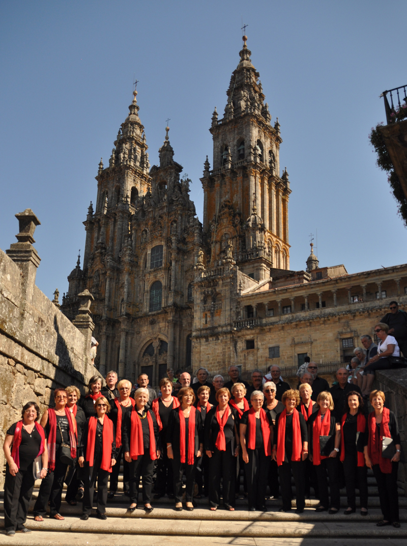 A les 8 del matí ja erem a l’aeroport de Santiago i la primera visita va ser per la Catedral i els seus entorns. Un vegada posats en situació i després de visitar la tomba de l’Apòstol Sant Jaume, els cantaires/pelegrins vàrem dedicar la setmana a recórrer Galicia amb autobús, visitant diferents punts importants del Camí de Santiago com Finis-terre, Betanzos, Pontedeume, A Coruña, San Andrés de Teixido, Lugo, Ourense, Baiona i també navegacions per les Gorges del riu Sil i la ria d’Arousa.
