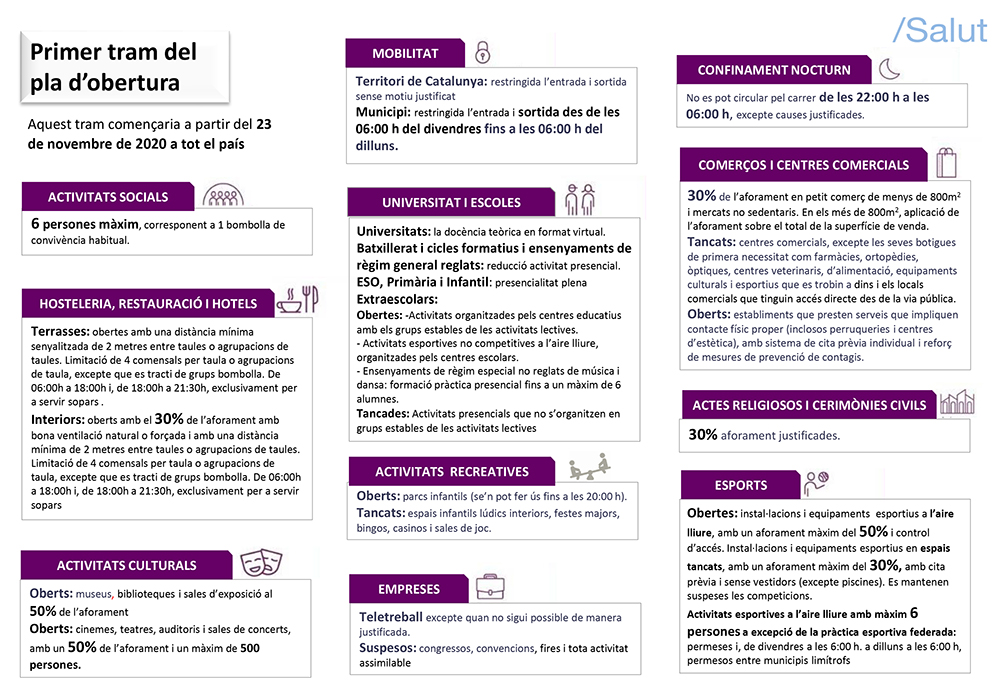 El PROCICAT ha aprovat un Pla de reobertura de les activitats que s'estructura en quatre fases i s'allargarà fins a mig gener