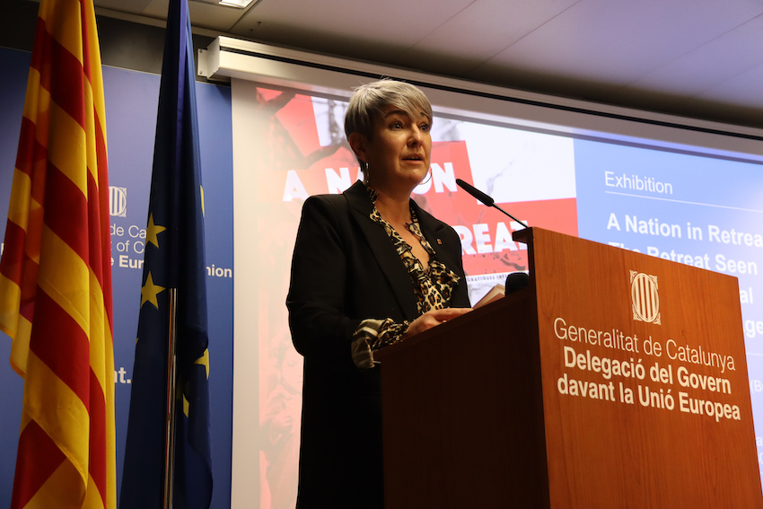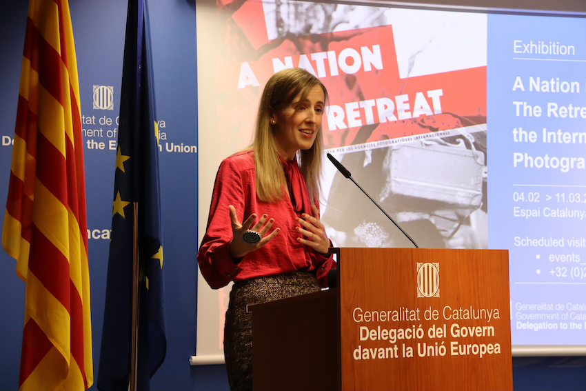 La consellera d’Acció Exterior i Govern Obert, Victòria Alsina, i la consellera de Justícia, Lourdes Ciuró, van defensar divendres a Brusel·les que el Govern ha de treballar per garantir els drets i les llibertats dels exiliats i revertir la seva situació. Ho van fer des de la Delegació del Govern davant la Unió Europea, en l’acte d’ inauguració de l’exposició A Nation in Retreat. La Retirada Vista per les Agències Fotogràfiques Internacional’, organitzada pel Museu Memorial de l’Exili (MUME). La mostra es va inaugurar coincidint amb la vigília del Dia Nacional de l’Exili i la Deportació. I a l'acte també hi van participar el President Puigdemont i els consellers a l’exili Toni Comín, Clara Ponsatí i Lluís Puig, entre d'altres autoritats.