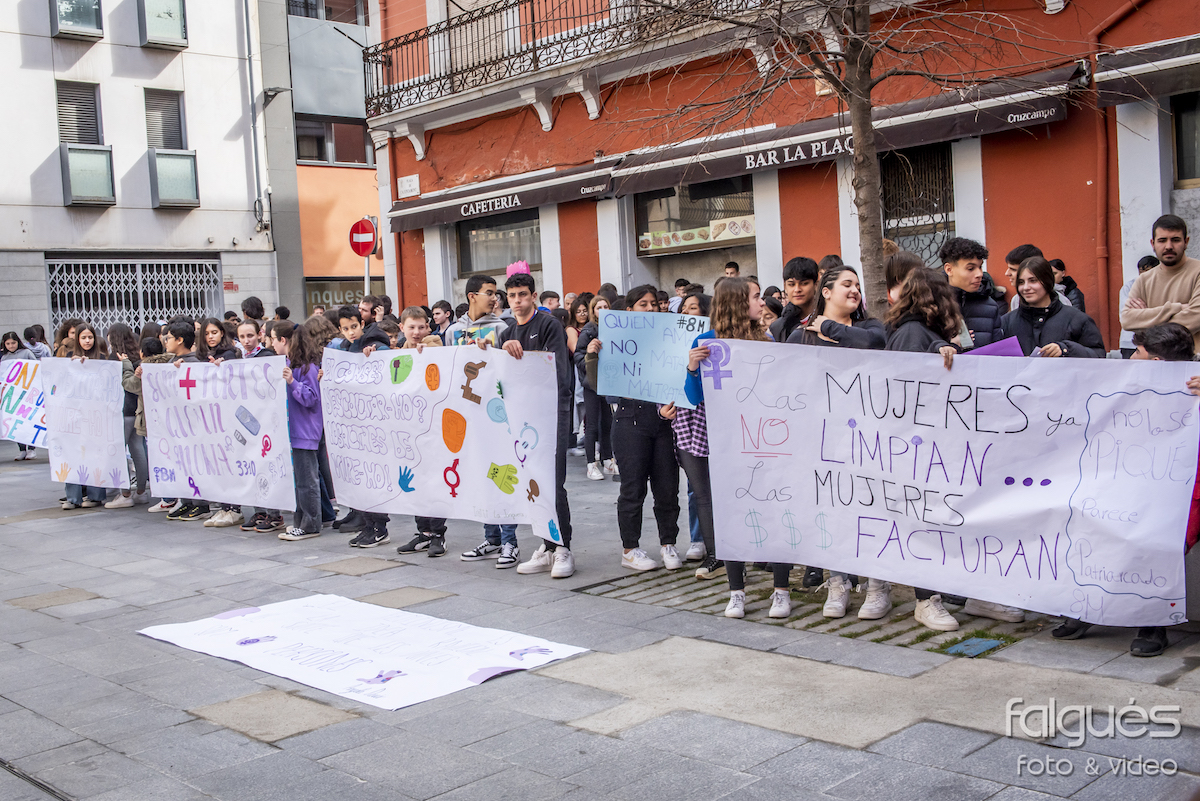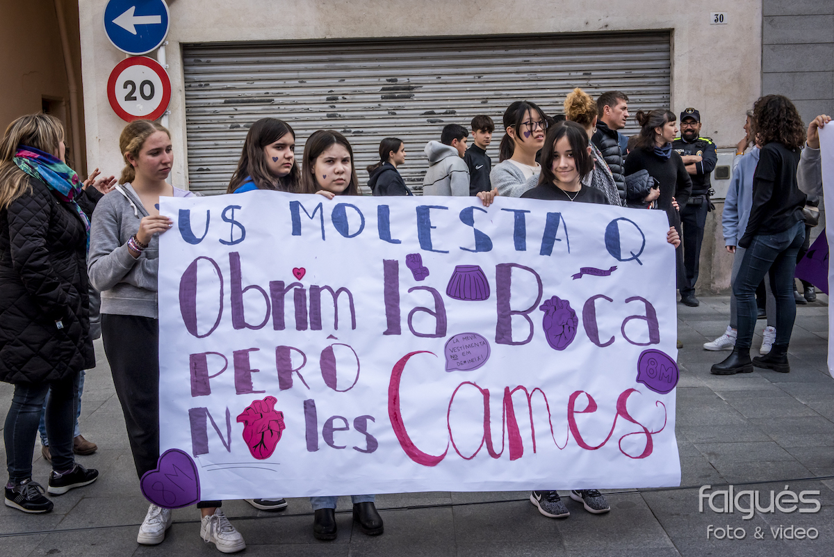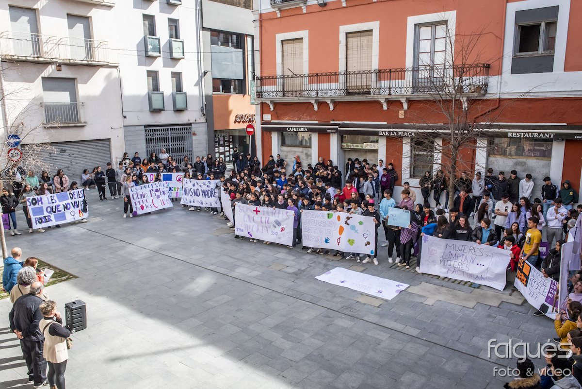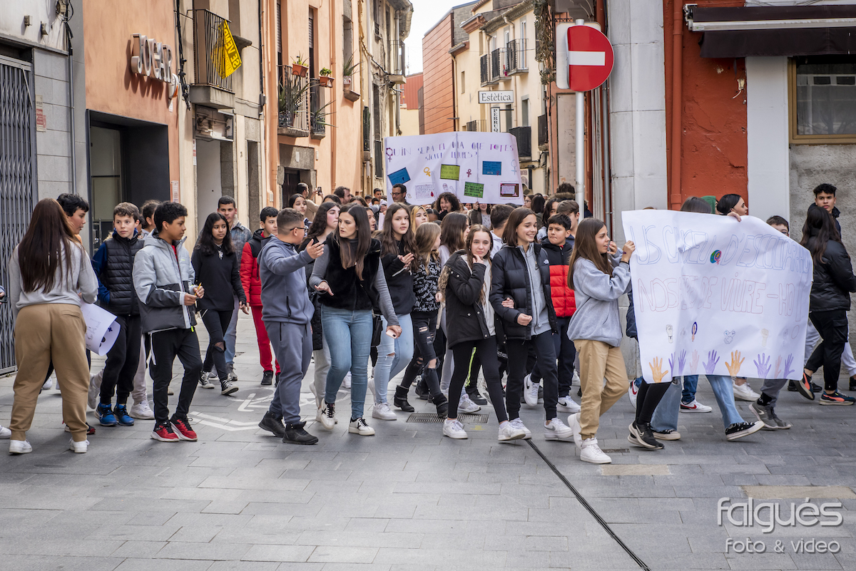 Desenes de joves de l’Institut de la Jonquera van sortir ahir al matí al carrer per reivindicar el Dia de la Dona Treballadora. Escudats amb pancartes on s’hi podien llegir diversos lemes contra les discriminacions de gènere i a favor de la igualtat, els nois i noies van fer una marxa fins a la plaça de l’Ajuntament, on a les 14 h es va fer la lectura del manifest institucional del 8-M.