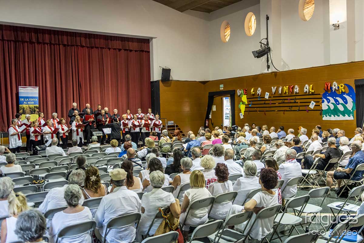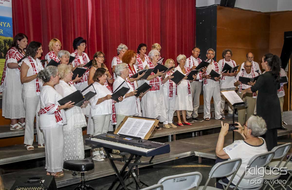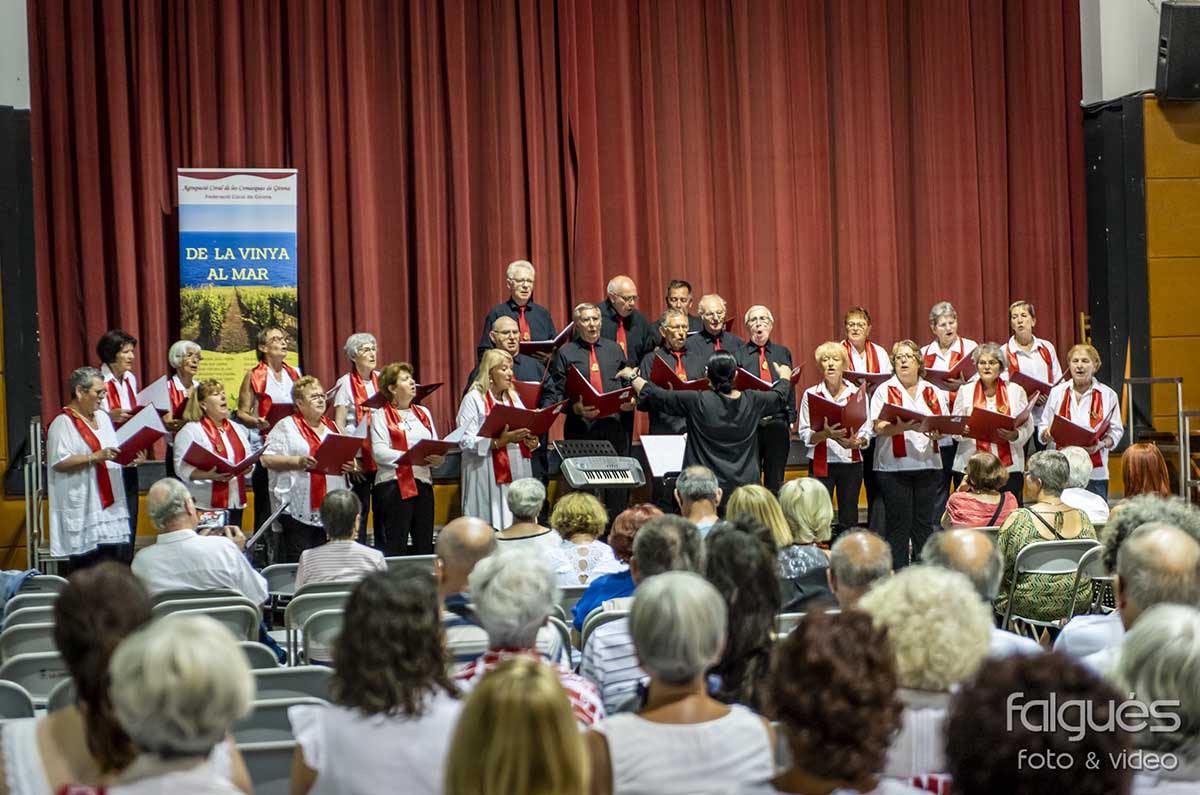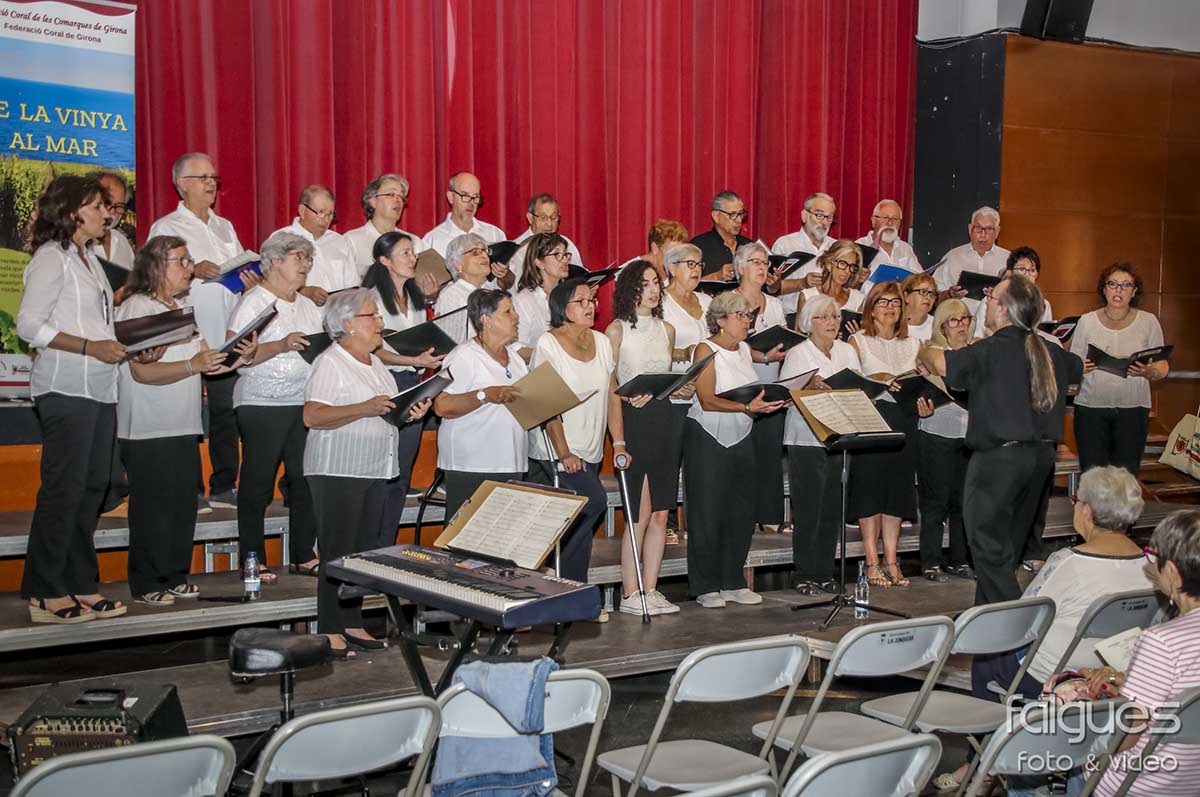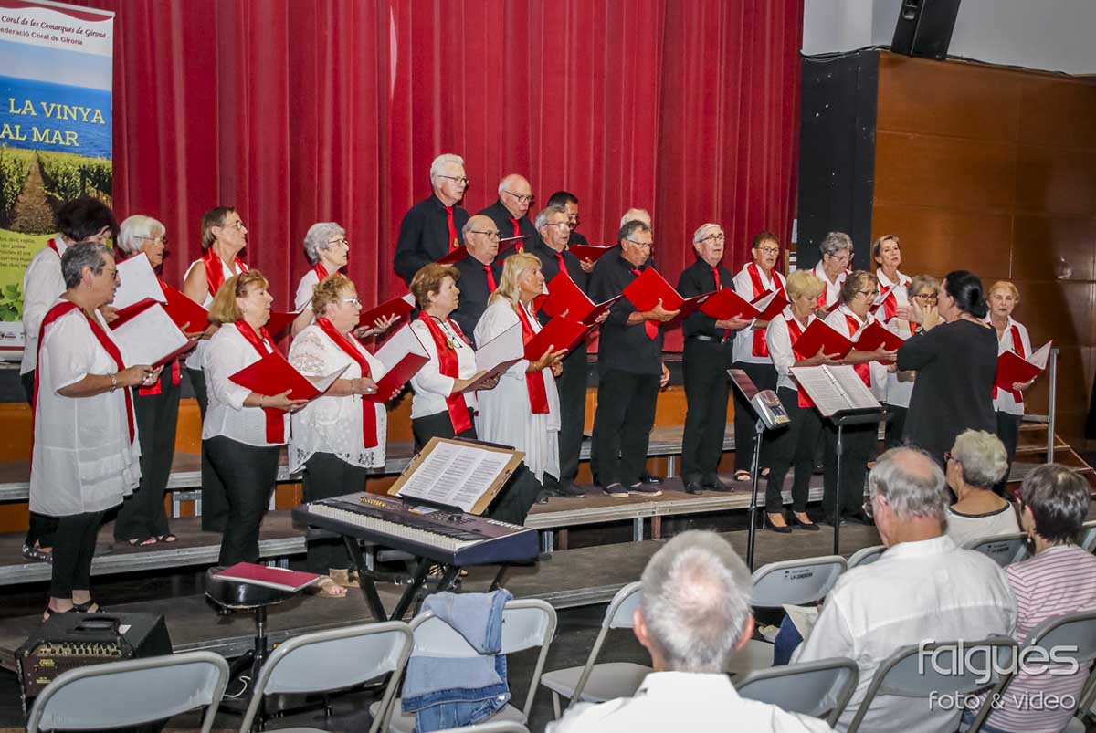Diversos cors de les comarques gironines i de la Catalunya Nord van participar diumenge a la tarda a la trobada de corals que es va fer a la sala de la Societat Unió Jonquerenca. Rere el títol “De la vinya al mar”, els cantaires van interpretar diverses cançons populars i d’autor centrades en el paisatge de l’Empordà: la muntanya, la plana i el mar. Eren cançons que tracten sobre la vinya i el vi, la pagesia i la natura, o cançons de taverna i d’ambient mariner.