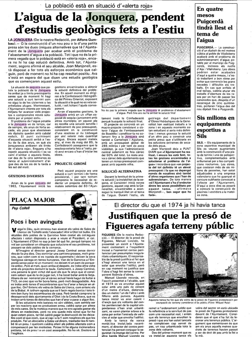 Aquella tardor de 1985, la sequera a La Jonquera exemplificava un problema que afectava molts municipis de l’Empordà i que posava de manifest la necessitat d’inversions estructurals per garantir el subministrament d’aigua en períodes de forta escassetat.
