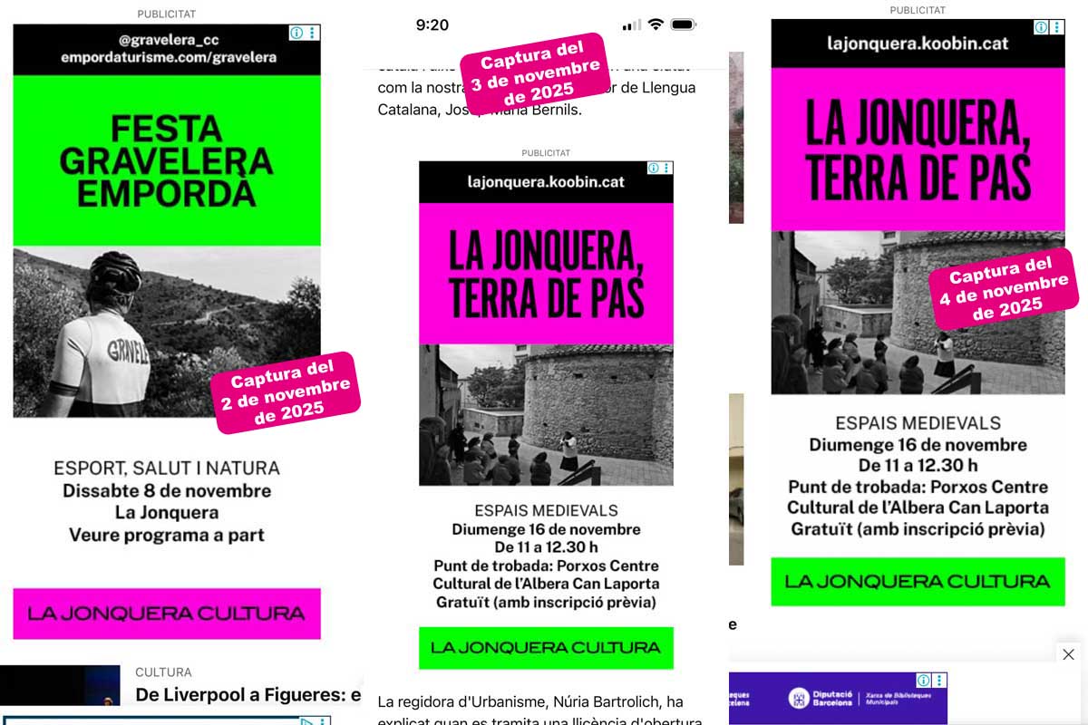 Si aquests dies navegueu per internet, especialment per webs d’informació i lleure, és molt possible que us apareguin uns banners publicitaris de Google Ads anunciant activitats de La Jonquera Cultura. Per exemple, la Festa Gravelera a la Jonquera el 8 de novembre, o La Jonquera, terra de pas, el 16 de novembre.