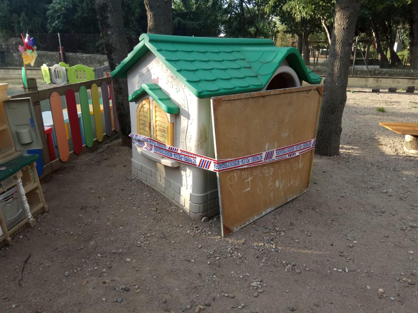 Els Mossos d'Esquadra i la Policia Local de la Jonquera han precintat aquesta setmana de manera temporal una petita caseta de plàstic que hi ha al pati de la llar d'infants municipal i en la qual solen jugar els nens i nenes. El motiu: que dijous les treballadores hi van trobar diverses mantes i cartrons a dins, com si estés preparat perquè algú hi hagués dormit o hi volgués dormir.